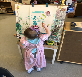 During my observations, I noticed that Matilda used different hands depending on the craft that she was doing. While doing crafts that involved using a marker, she would use her left hand. In comparison, while doing crafts that involved using a paint brush on an easel, she would use her right hand. I found her ambidexterity, the ability to use both your right hand and left hand very well, to be very interesting and makes me question which hand she will grow up to use. Those who are left handed are associated with having artistic talent so it doesn’t surprise me that she possesses such artistic qualities of enjoying painting and drawing.