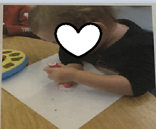 I first noticed Matilda attempting to hold a marker in the art area when she started the program in the toddler room. She was exploring how to properly hold a writing utensil and It took a lot of focus and determination. Matilda wrapped her hand around the marker while her other hand was holding the paper and she began to scribble (Physical 5.2 Making a Mark). Matilda smiled so big that lit up her face and she giggled to herself and that is when I knew she was proud of herself at that moment.